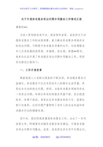 / 关于开展养老服务突出问题专项整治工作情况汇报