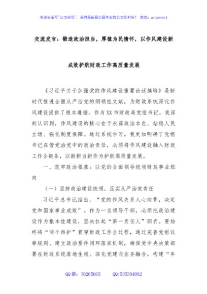 交流发言:锻造政治担当,厚植为民情怀,以作风建设新成效护航财政工作高质量发展