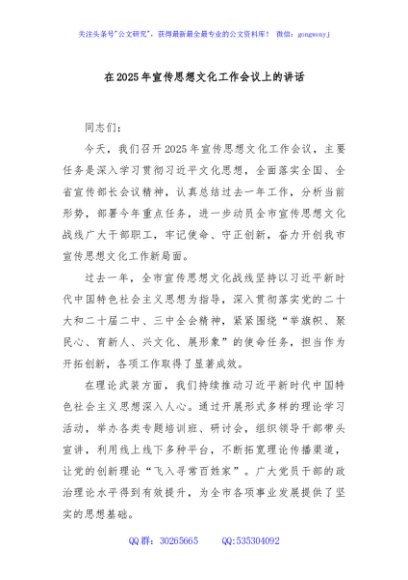 / 在2025年宣传思想文化工作会议上的讲话