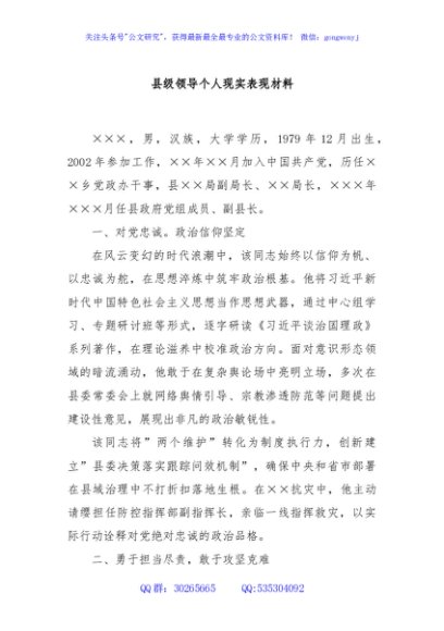 / 县级领导个人现实表现材料