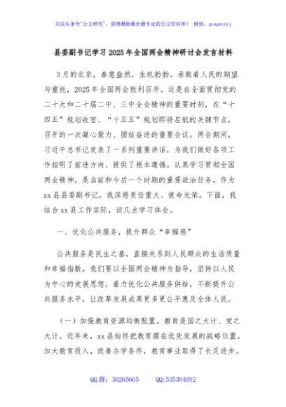 / 县委副书记学习2025年全国两会精神研讨会发言材料