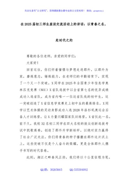 / 在2025届初三师生座谈交流活动上的讲话:以青春之名,赴时代之约