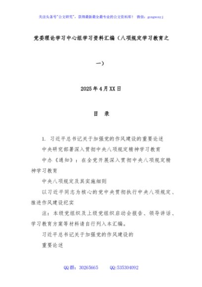 党委理论学习中心组学习资料汇编(八项规定学习教育之一)