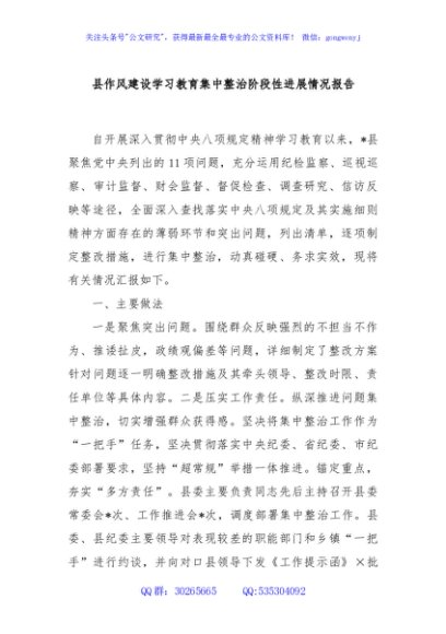 / 县作风建设学习教育集中整治阶段性进展情况报告