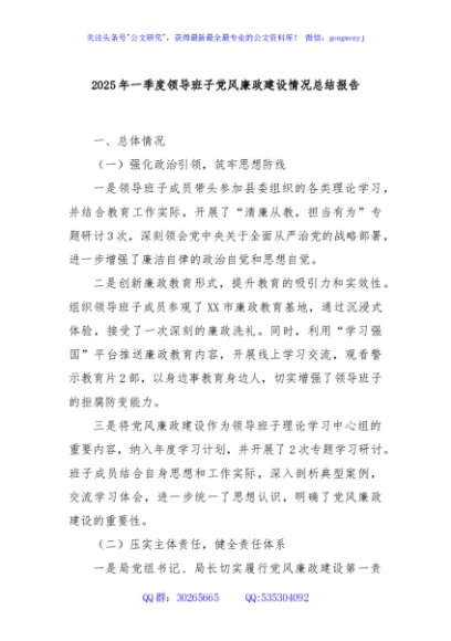/ 2025年一季度领导班子党风廉政建设情况总结报告