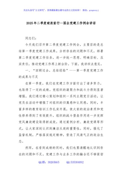 / 2025年二季度破浪前行—国企党建工作例会讲话