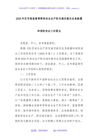 / 2025年区市场监督管理局安全生产防灾减灾救灾应急救援和消防安全工作要点