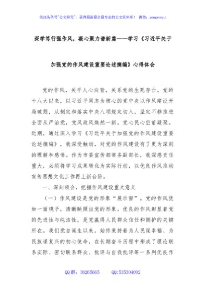 / 深学笃行强作风,凝心聚力谱新篇——学习《习近平关于加强党的作风建设重要论述摘编》心得体会