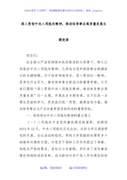 / 深入贯彻中央八项规定精神,推动体育事业高质量发展主题党课