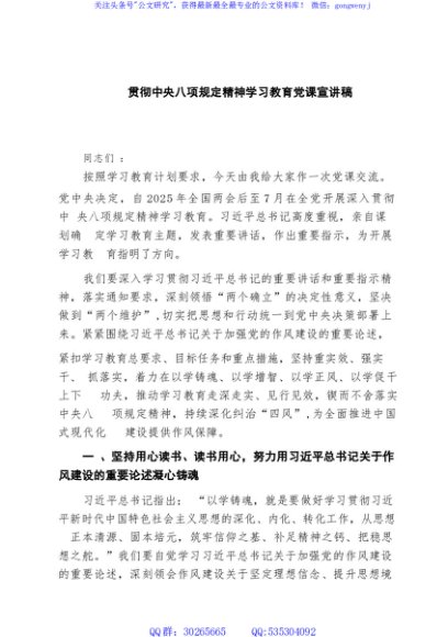 贯彻中央八项规定精神学习教育党课宣讲稿5篇(最新版)