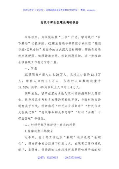 / 村级干部队伍建设调研报告