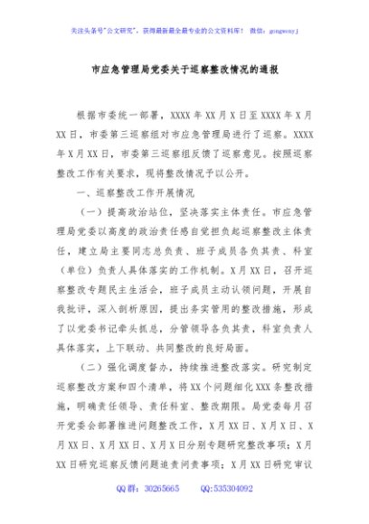 / 市应急管理局党委关于巡察整改情况的通报