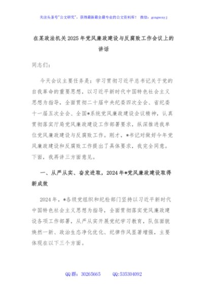 / 在某政法机关2025年党风廉政建设与反腐败工作会议上的讲话