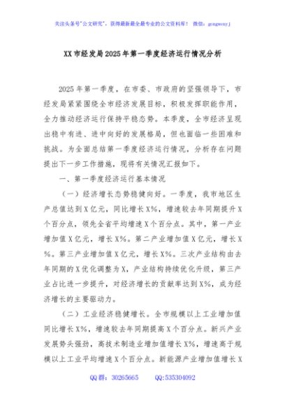 / XX市经发局2025年第一季度经济运行情况分析