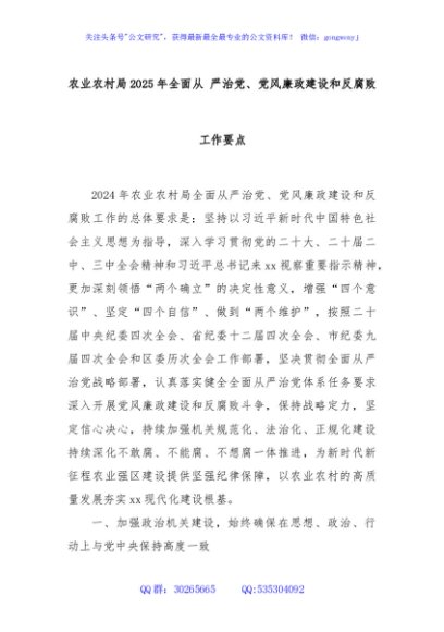 / 农业农村局2025年全面从 严治党、党风廉政建设和反腐败工作要点
