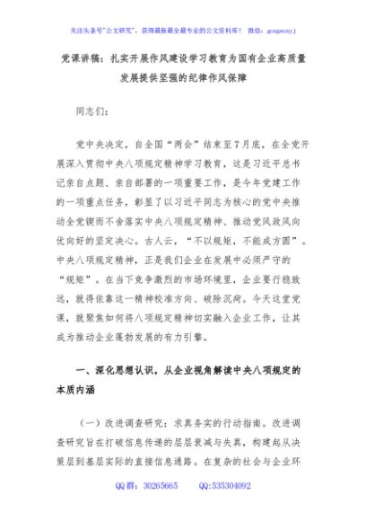 / 党课讲稿:扎实开展作风建设学习教育为国有企业高质量发展提供坚强的纪律作风保障