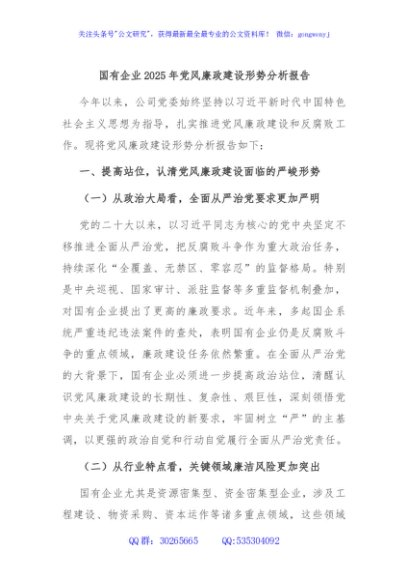 / 国有企业2025年党风廉政建设形势分析报告