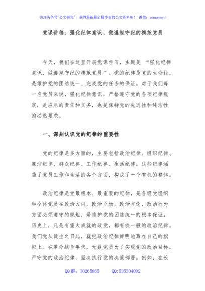 / 党课讲稿:强化纪律意识,做遵规守纪的模范党员