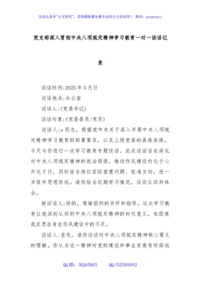 / 党支部深入贯彻中央八项规定精神学习教育一对一谈话记录