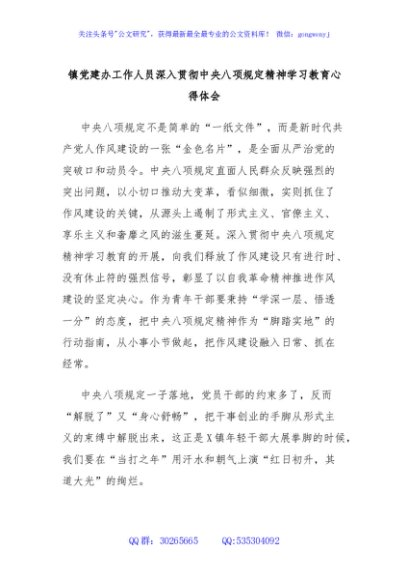 / 镇党建办工作人员深入贯彻中央八项规定精神学习教育心得体会