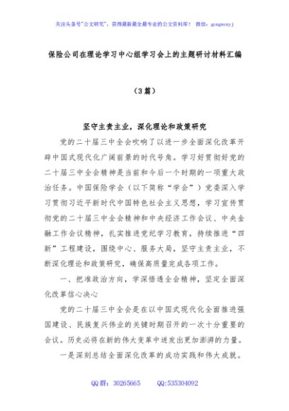 / (3篇)保险公司在理论学习中心组学习会上的主题研讨材料汇编