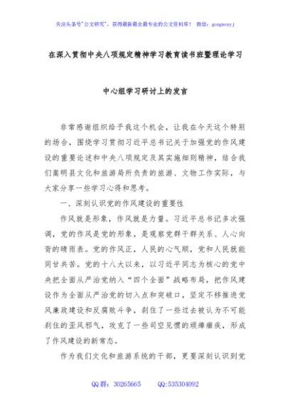 / 在深入贯彻中央八项规定精神学习教育读书班暨理论学习中心组学习研讨上的发言