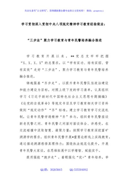 / 学习贯彻深入贯彻中央八项规定精神学习教育经验做法:“三步法”聚力学习教育与青年民警培养融合推进