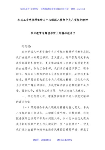 / 在总工会党组理论学习中心组深入贯彻中央八项规定精神学习教育专题读书班上的辅导报告2