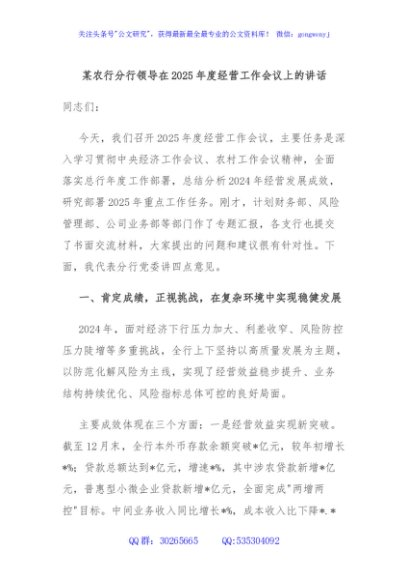 / 某农行分行领导在2025年度经营工作会议上的讲话