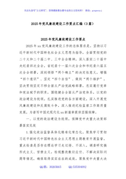 / (3篇)2025年党风廉政建设工作要点汇编