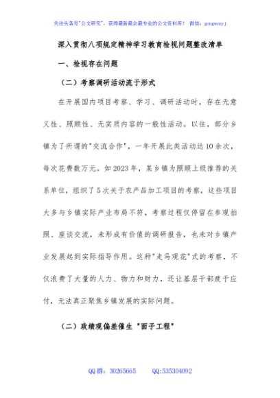 / 深入贯彻八项规定精神学习教育检视问题整改清单(乡镇共性问题)
