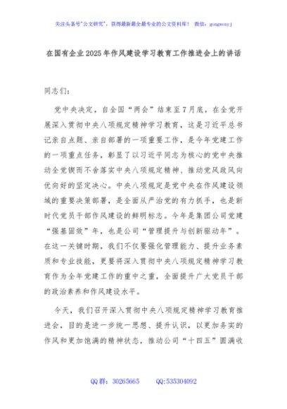 / 在国有企业2025年作风建设学习教育工作推进会上的讲话