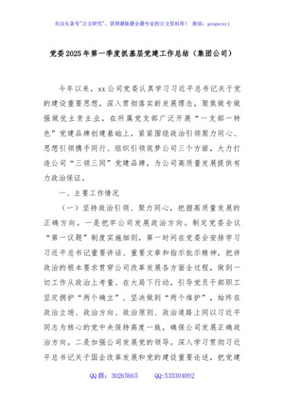 / 党委2025年第一季度抓基层党建工作总结(集团公司)