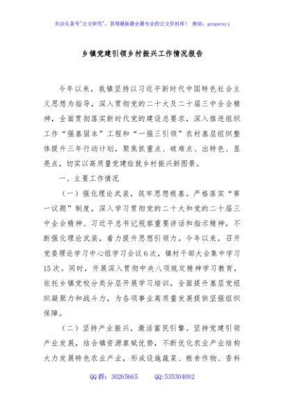 / 乡镇党建引领乡村振兴工作情况报告