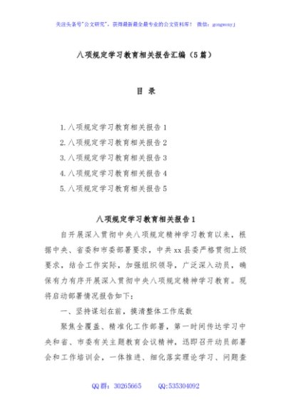 / (5篇)八项规定学习教育相关报告汇编