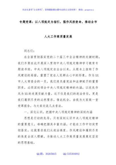 / 专题党课:以八项规定为指引,强作风担使命,推动全市人大工作高质量发展