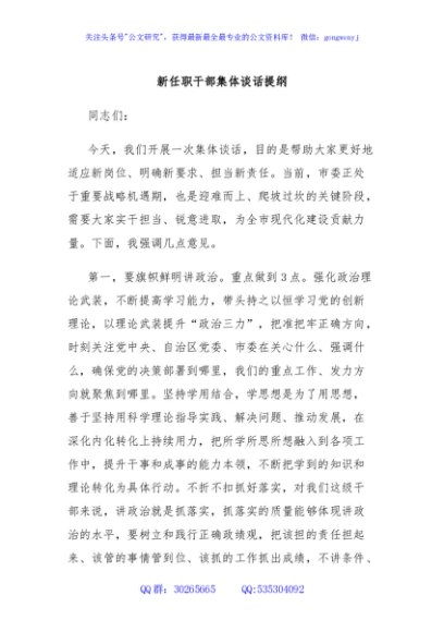 / 新任职干部集体谈话提纲