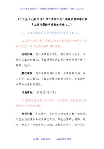 / (个人版3大类28条)深入贯彻中央八项规定精神学习教育工作问题清单及整改台账(二)