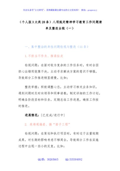 / (个人版3大类28条)八项规定精神学习教育工作问题清单及整改台账(一)
