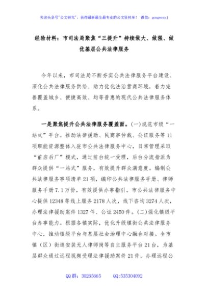 / 经验材料:市司法局聚焦“三提升”持续做大、做强、做优基层公共法律服务