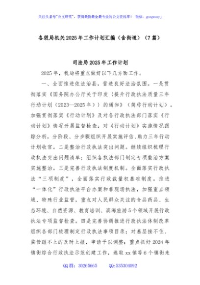 / (7篇)各级局机关2025年工作计划汇编(含街道)