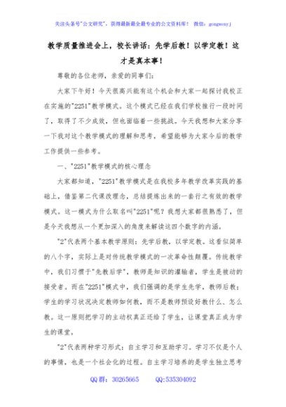/ 教学质量推进会上,校长讲话:先学后教!以学定教!这才是真本事!