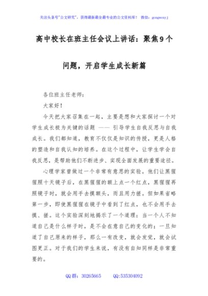 / 高中校长在班主任会议上讲话:聚焦9个问题,开启学生成长新篇