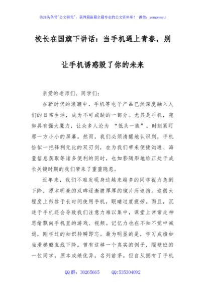 / 校长在国旗下讲话:当手机遇上青春,别让手机诱惑毁了你的未来