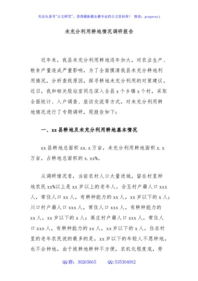 / 未充分利用耕地情况调研报告