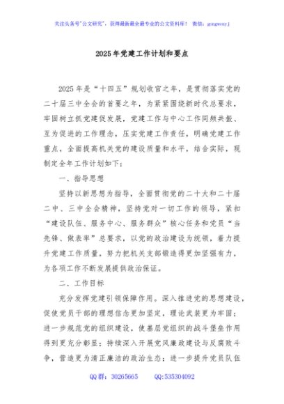 / 2025年党建工作计划和要点