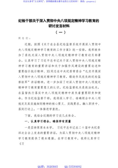 / 纪检干部关于深入贯彻中央八项规定精神学习教育的研讨发言材料