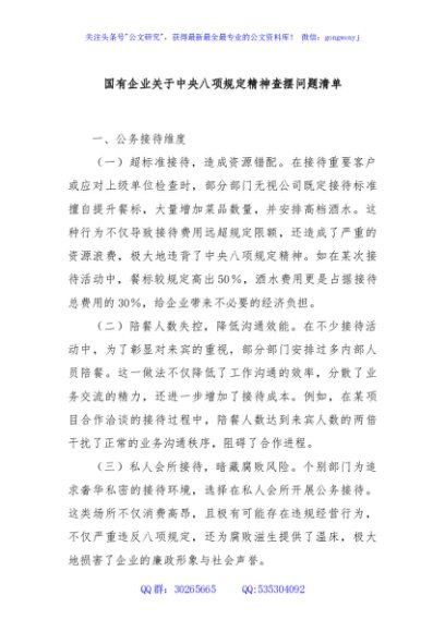 / 国有企业关于中央八项规定精神查摆问题清单