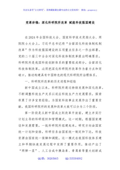 / 党课讲稿:深化科研院所改革 赋能科技强国建设