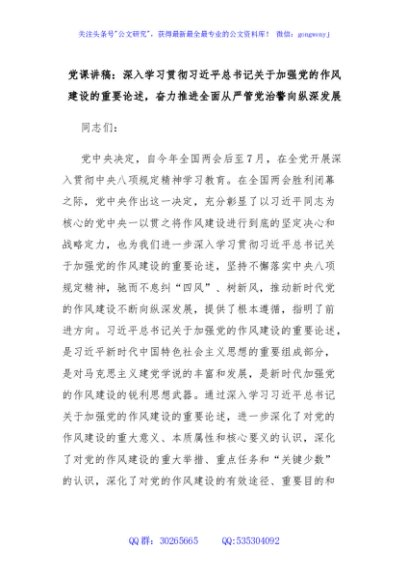 / 党课讲稿:深入学习贯彻习近平总书记关于加强党的作风建设的重要论述,奋力推进全面从严管党治警向纵深发展